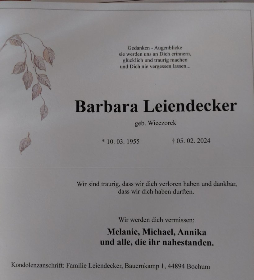 Barbara Leiendeckergestorben am 5. Februar 2024